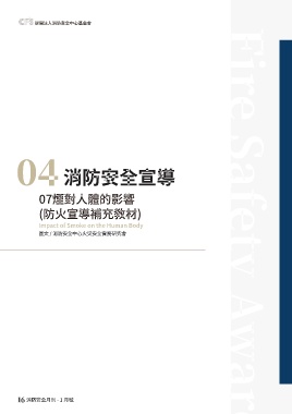 Fire Safety 消防做得好 居家安全沒煩惱 財團法人消防安全中心基金會 Monthly January 2026 �� 消防安全宣導 07煙對人體的影響 (防火宣導補充教材) Impact of Smoke on the Human Body 圖文 / 消防安全中心火災安全實務研究會 Fire Safety Awareness 16 消防安全月刊 - 1 月號