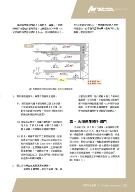 樓梯口的煙在此暫時滯留,之後煙會流入梯間,火 行速度快。此實驗所呈現結果,還有下列 2 點