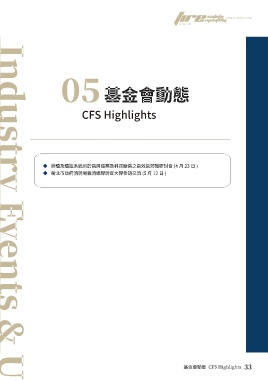Fire Safety 消防做得好 居家安全沒煩惱 財團法人消防安全中心基金會 Monthly January 2026 �� 基金會動態 CFS Highlights ◆ 排煙及煙控系統用於高層建築及科技廠房之高效能防護研討會 (4 月 23 日 ) ◆ 新北市政府消防局義消總隊防宣大隊參訪交流 (5 月 12 日 ) 基金會動態 CFS Highlights 33 Industry Events & Updates