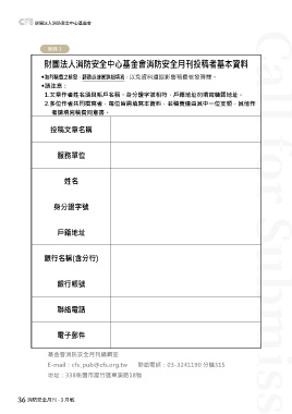 投稿文章名稱 片等)經財團法人消防安全中心基金會(下稱基金會)消防安全月刊