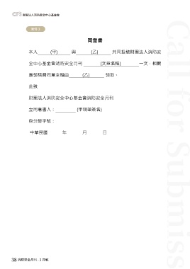Fire Safety 消防做得好 居家安全沒煩惱 財團法人消防安全中心基金會 Monthly January 2026 附件三 附件 3 同意書 本人 (甲) 與 (乙) 共同投稿財團法人消防安 全中心基金會消防安全月刊 (文章名稱) 一文,相關 應領稿費同意全額由 (乙) 領取。 此致 財團法人消防安全中心基金會消防安全月刊 立同意書人: (甲親筆簽名) 身分證字號: 中華民國 年 月 日 Call for Submissions 38 消防安全月刊 - 3 月號
